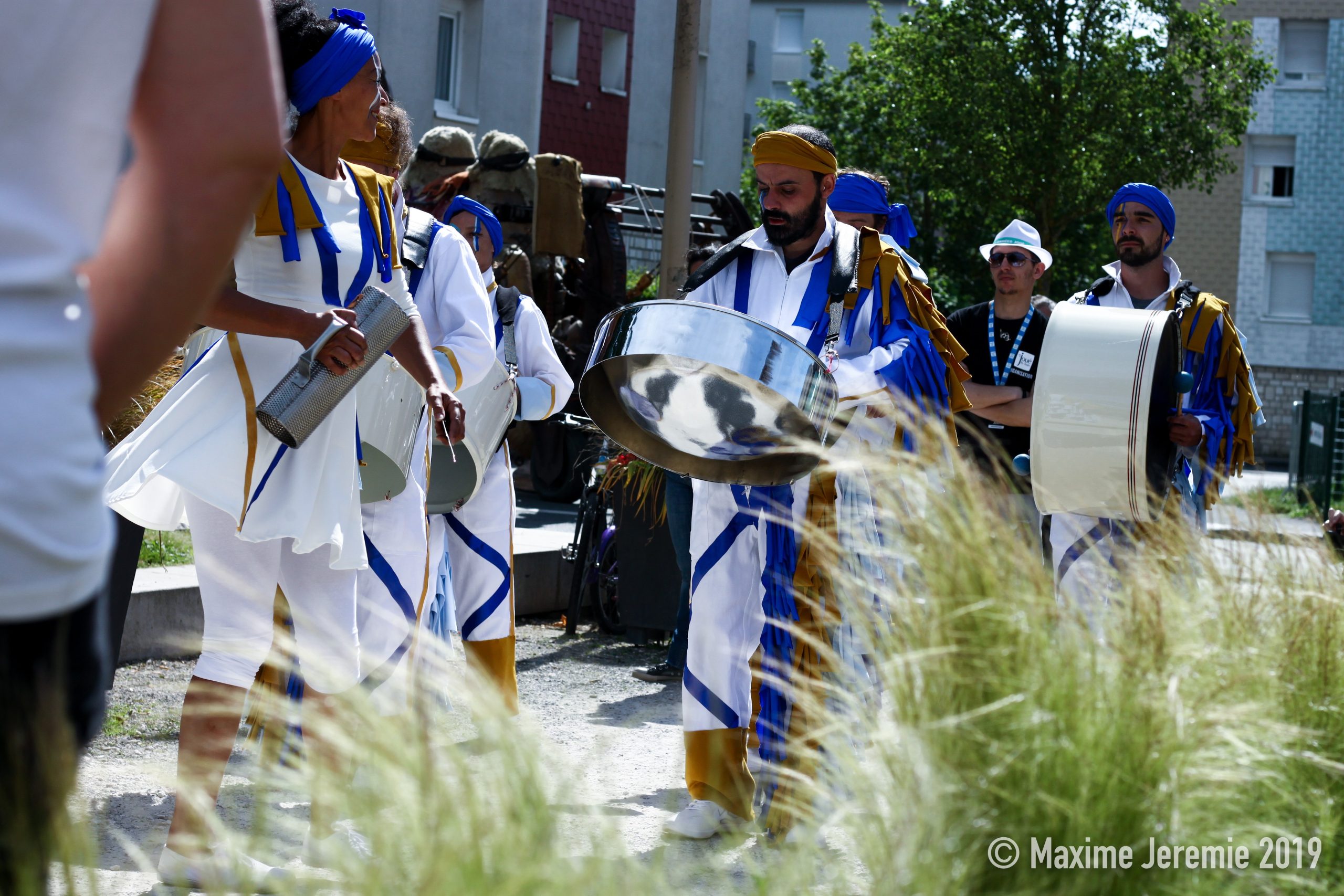 Dans des costumes hauts en couleurs, Pan’n’Co StreetBand transforme la Rue en un véritable carnaval caribéen !