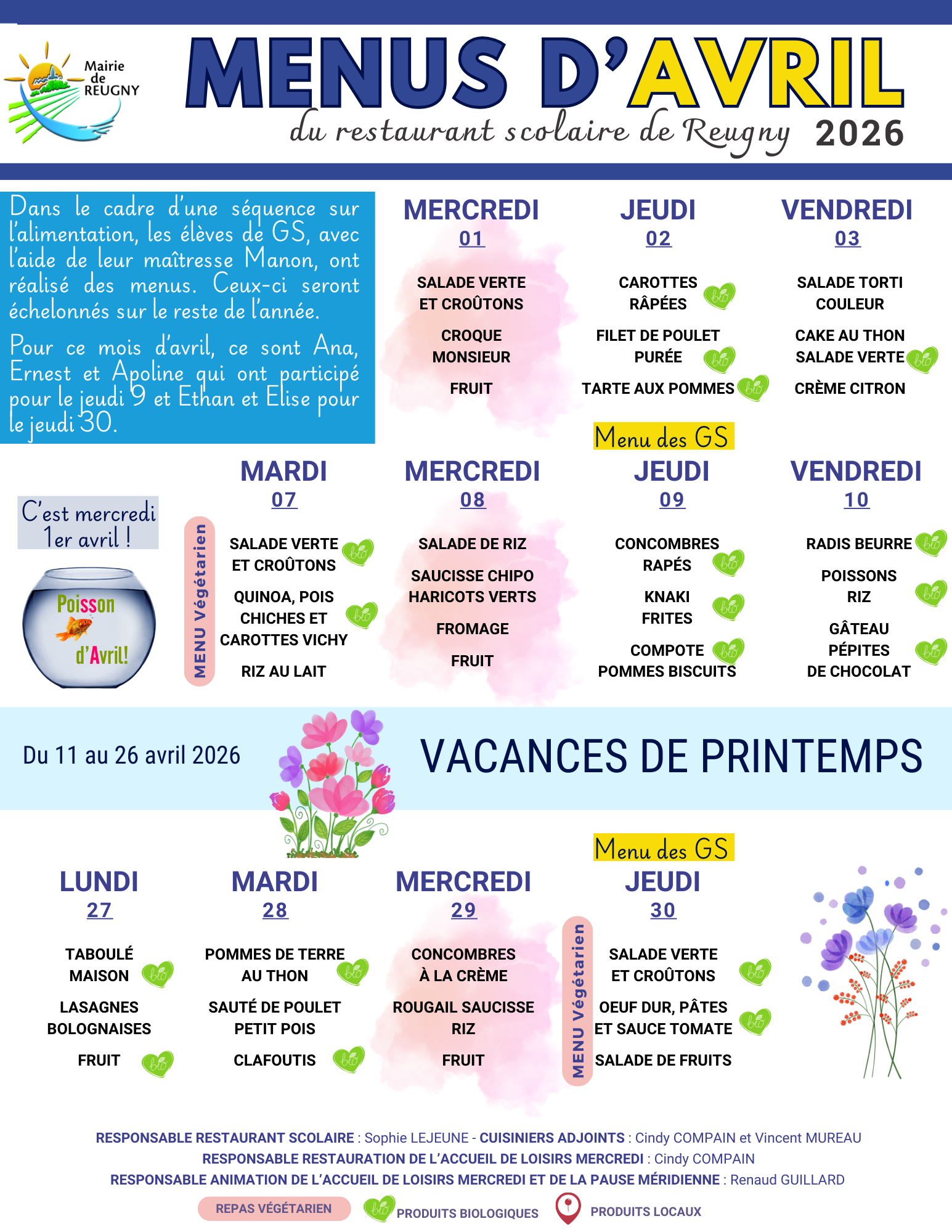 AVRIL 2026 – MENUS RESTAURANT SCOLAIRE